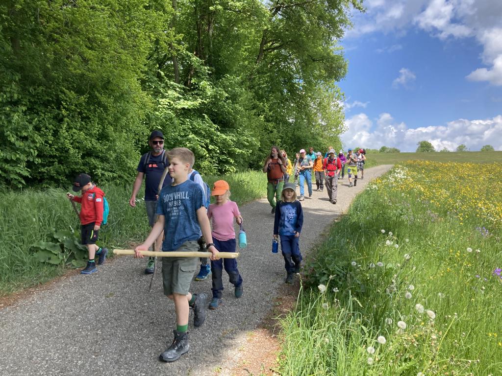Am Samstag, den 5.April, schnürte dieses Jahr die Familiengruppezum ersten Mal ihre Wanderschuhe. Bei tollem Wanderwetter führte der Weg über den „Klettersteig“ hinauf zum Scheuelberg und von dort über das Himmelreich zum Bargauer Horn. Die Natur zeigte sich in bester Frühlingsstimmung, die sich auf die 15köpfigeWandergruppe übertrug. Auf dem Rückweg zum Feuersee wurde am Kolpinghaus noch gegrillt. Dass das Kolpinghaus nur noch sonntagsgeöffnet hat, tat der Stimmung keinen Abbruch, da Joachim, anlässlich seines Geburtstages, für alle Wurst, Grillkäse und Getränke im Wald deponiert hatte.