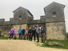 30 Kilometer auf dem Limesweg war das Ziel, dass sich sechs mutige Recken und eine holde Maid gesetzt hatten. Leider geriet das Unterfangen zu Beginn schon in Schwierigkeiten. Das große bestellte Gefährt, namens Bus, erschien nicht zur gegebenen Zeit, sodass mit einer kleinen privaten Nussschale die Anfahrt nach Welzheim vollzogen werden musste. Dort traf man am Limestor auf zwei wackere Gefährtinnen, die sich der illustren Truppe anschlossen. Frohgemut ausschreitend zogen die Genossen los, um ihr fernes Ziel noch vor Einbruch der Dämmerung zu erreichen. Im Laufe der Strecke, die die Kameraden über Haghof, Pfahlbronn, Schelmenklinge, Schillergrotte, Hohler Stein, Schölleshof, Kleindeinbach, Wustenried bis nach Schwäbisch Gmünd führte, wurden die Schritte kleiner, der Durst größer und die Witze schlechter. Wäre nicht die holde Maid gewesen, die mit ihrem jugendlichen Elan das Tempo hochhielt, würde man die Recken vielleicht noch heute durch die endlosen Wälder des Welzheimer Waldes irren sehen.
